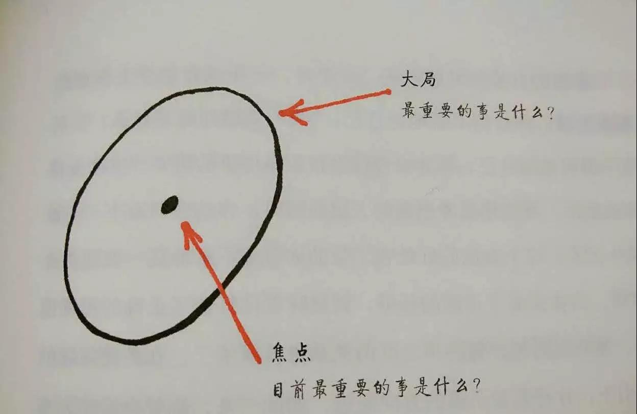 当我看到这幅图的时候,心想,不就是我说的战略三部曲吗?大局就是预测,看大方向。焦点就是破局点,找那个关键点。只做这件事,就是All in。