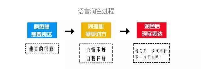 一个高情商的人,就算对于当前的环境有任何意见,他的表达方式,也会经过一个“润色”的过程。这就是语言制约行为,从而影响情绪的控制机制。