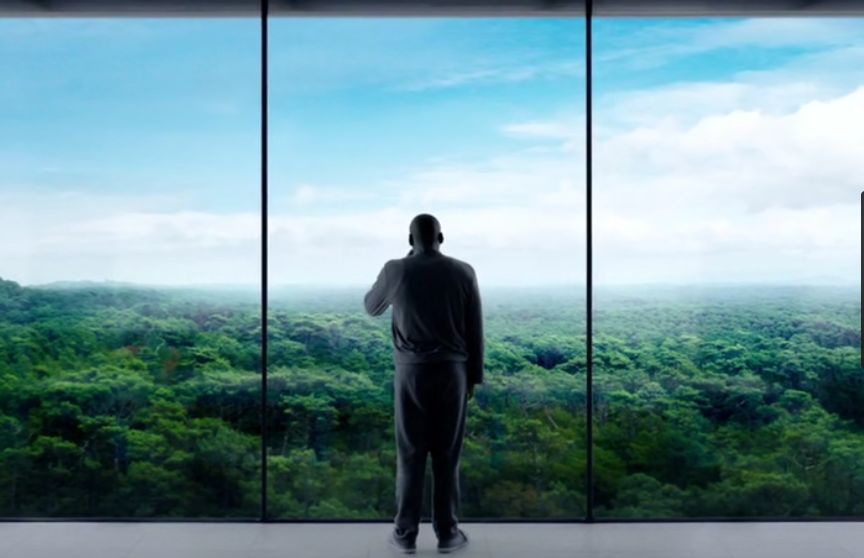 深陷失控循环生活中的男主角,从心底可能也认为这样的生活走不到头,最后他抓住了机会,一跃成名,站在了更大的电子屏幕面前发呆。